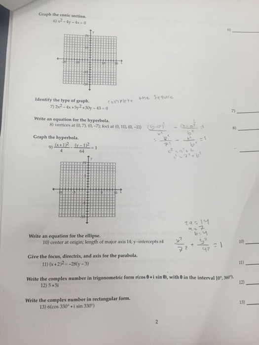 Solved For Questions 7 9 Graph Each Conic Section X 5 2 Y 3 2 1 16 5 14 13 12 11 10 9 8 7 6 5 4 3 2 1 2 3 4 5 6 7 8 9 10 11 12 13 14 Cente Course Hero