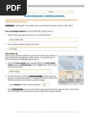 Identifying Nutrients Gizmo Answer Sheet Pdf